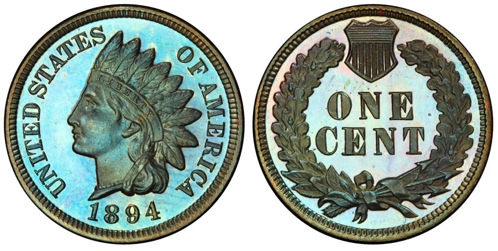 The condition of an 1894 Indian Head Cent significantly impacts its value. Due to its age and circulation, finding high-grade examples can be challenging. Coins in uncirculated condition (MS60 or higher) are particularly desirable and command substantial premiums.